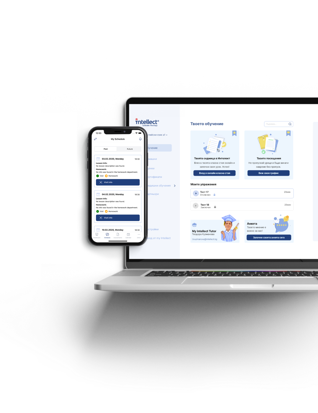 My Intellect е твоят личен електронен дневник, който ти помага бързо и лесно да следиш всички свои активности, както и да решаваш тестове, за по-бърз напредък в езиковото си обучение.